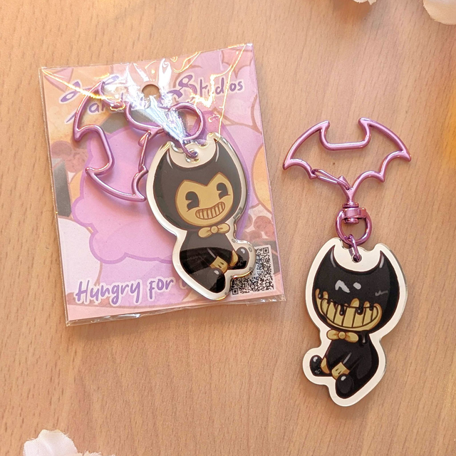 A keychain of Bendy and Ink Monster from Bendy and the Ink Machine