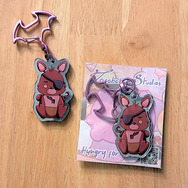 A keychain of Foxy from FNAF, Five Nights at Freddy's, artwork by Taroball Studios.