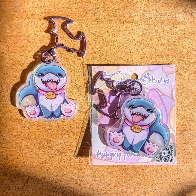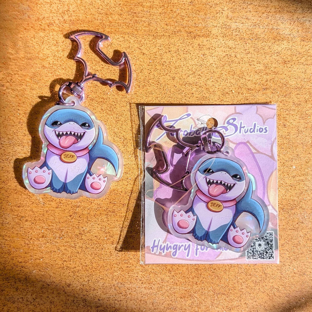 A keychain of Jeff the Land Shark from Marvel Rivals
