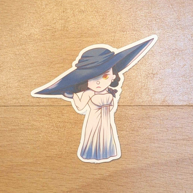 A sticker of Lady Dimitrescu from Resident Evil 8