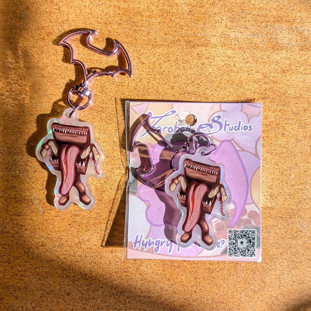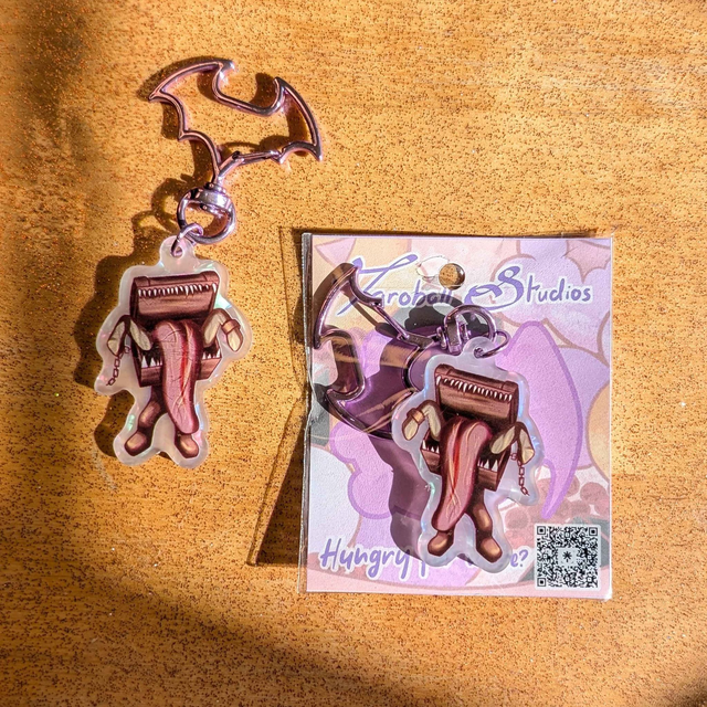 A keychain of a Mimic Chest from Dark Souls