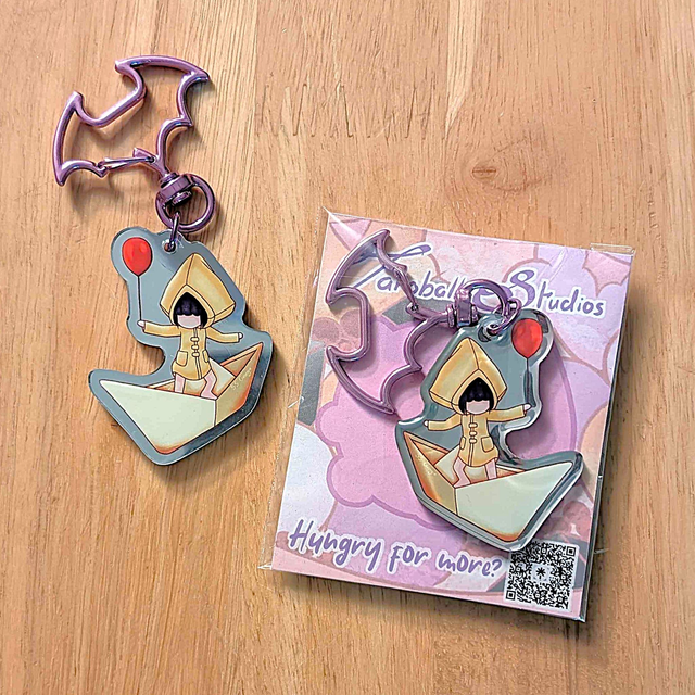 A keychain of Six from Little Nightmares, artwork by Taroball Studios.