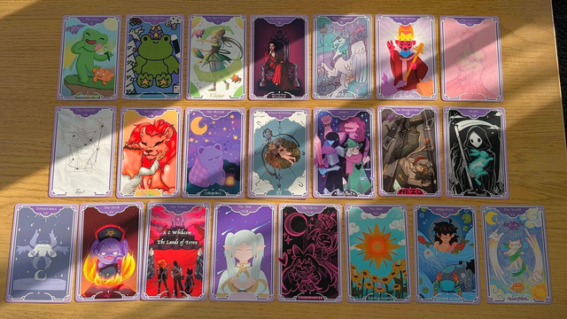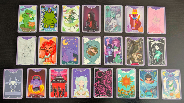 A set of Major Arcana Tarot Cards made by artists at Taroball Con 2025.